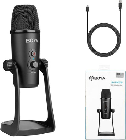 BOYA by-WM4 Pro K2 2,4G PC/Estudio BY-PM700 Marca BOYA Nombre del modelo USB MICROPHONE Tecnología de conectividad USB Tipo de conector USB Dispositivos compatibles Ordenador personal Componentes incluidos Micrófono. Patrón de polaridad Omnidireccional Sensibilidad de audio 45 dB Peso del producto 1,1 Kilogramos Dimensiones del producto: largo x ancho x alto 10 x 10 x 20 centímetros