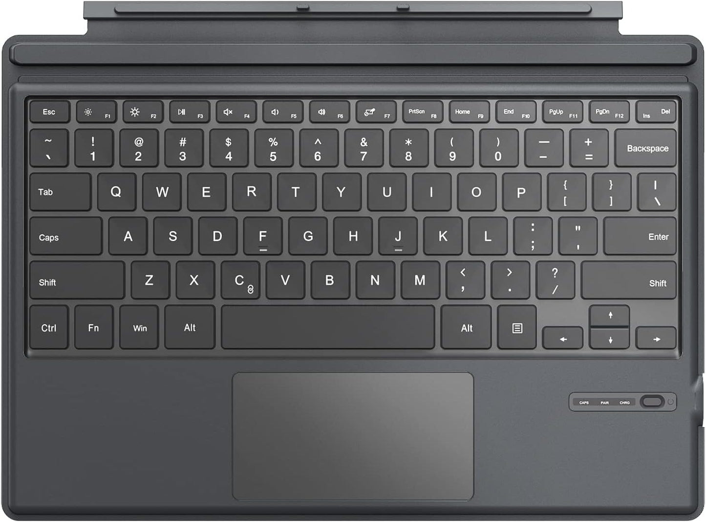- AMPLIA COMPATIBILIDAD: Este teclado NO Español está diseñado exclusivamente para Surface Pro 7 Plus /Pro 7 / Pro 6 / Pro 5 (Pro 2017) / Pro 4 / Pro 3, con teclas ligeramente extendidas para una experiencia de escritura más familiar y eficiente que se siente como una computadora portátil tradicional. Nota: El teclado es un teclado Inglés Americano, las teclas no son totalmente compatibles con otros métodos de entrada, por favor, compruebe antes de comprar.